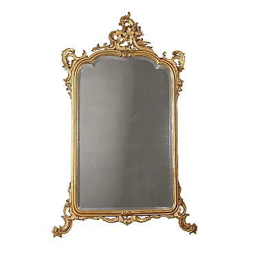Specchiera in stile Barocco, Italia fine XIX secolo. Cornice realizzata in legno dorato con applicazioni ad intaglio di gusto rocaille; specchio molato.
