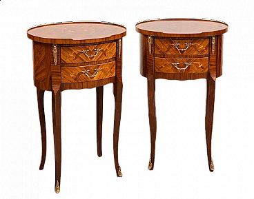 Coppia di comodini Napoleone III con intarsi, inizio '900