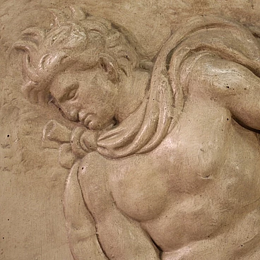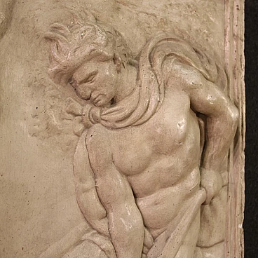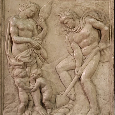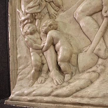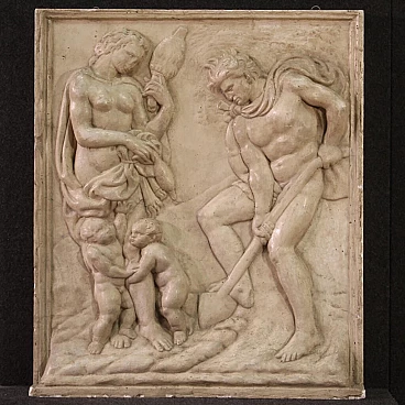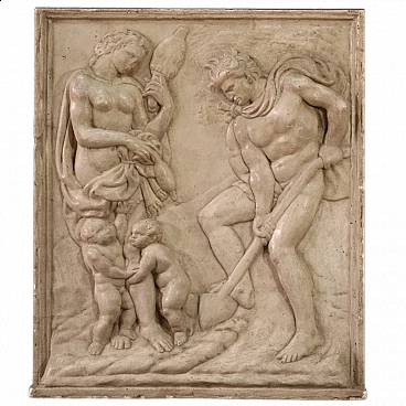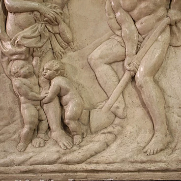 Adamo ed Eva al lavoro, bassorilievo in gesso, anni '60