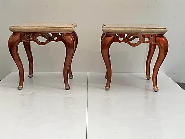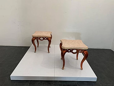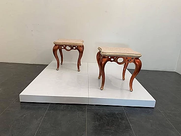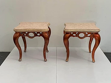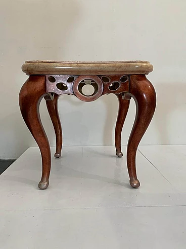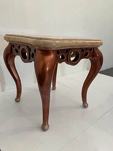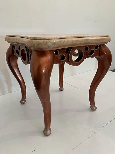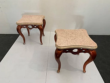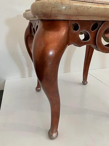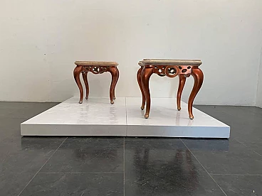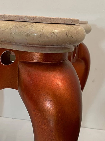 Coppia di tavolini in foglia di metallo rosso con piani in marmo rosa, anni '90