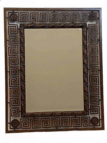 Specchio in ferro battuto e rame brunito laccato e patinato, anni '60