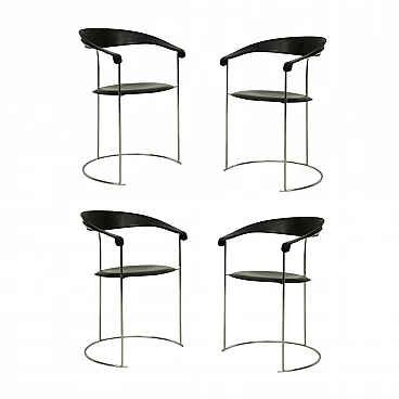 4 poltrone cromate con seduta in pelle nera, Arrben, modello Canasta, anni '60