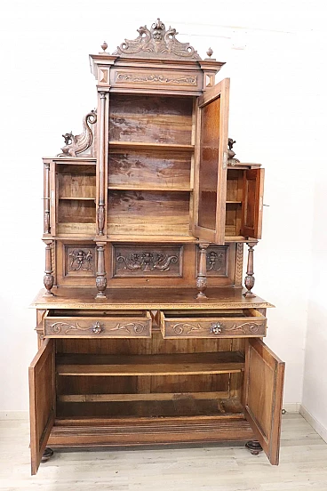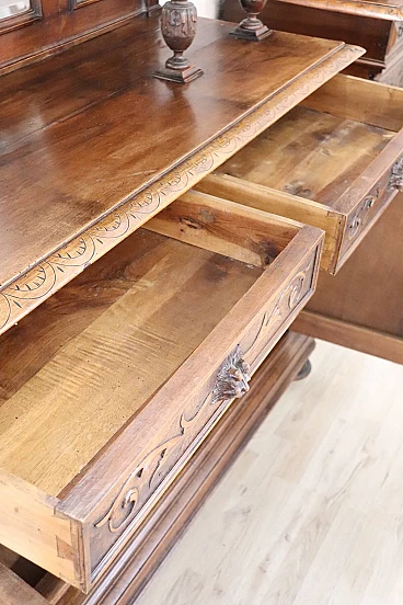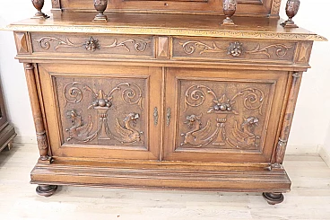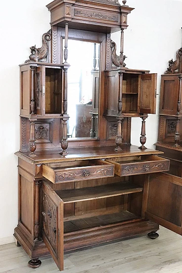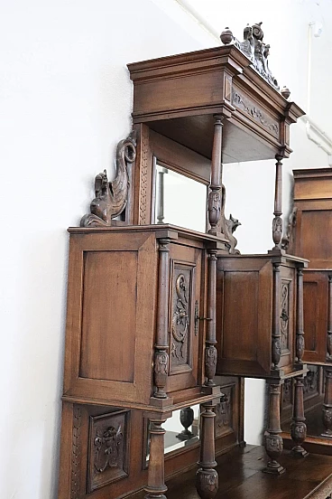 Coppia di credenze neo rinascimentali in noce scolpito sec. XIX