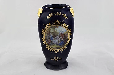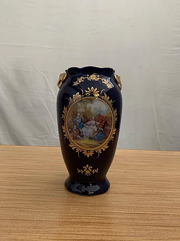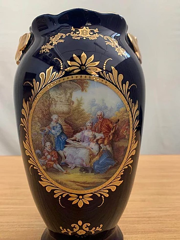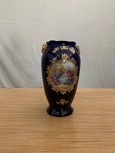 Vaso in ceramica blu con decorazioni Napoleone III, fine '800