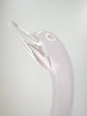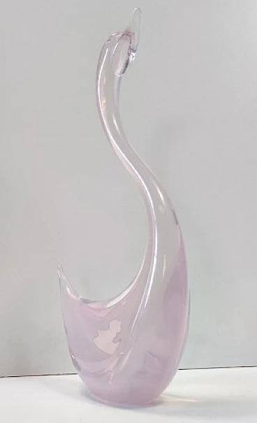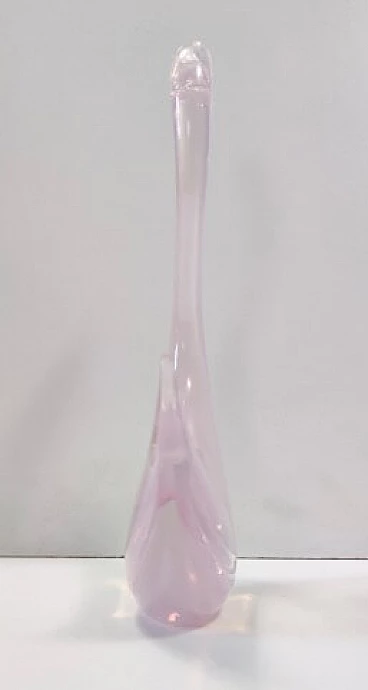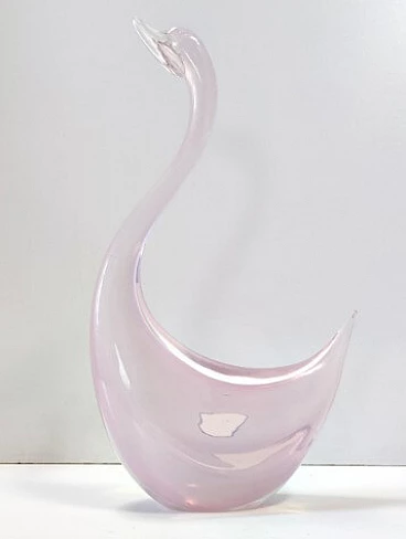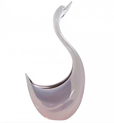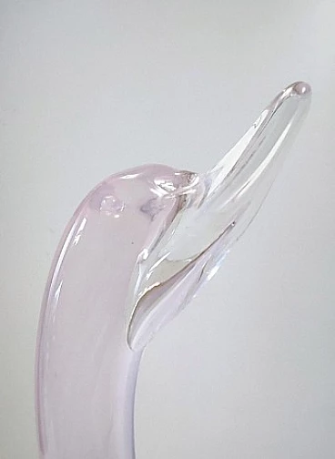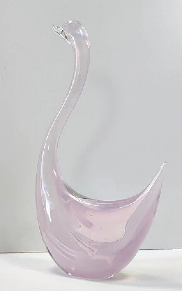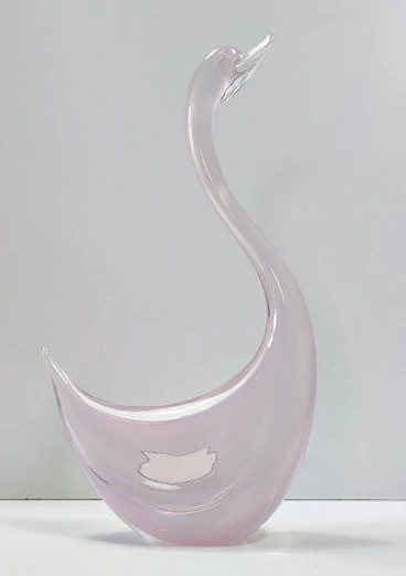 Cigno in vetro di Murano sommerso rosa di Elio Raffaeli, anni '80