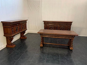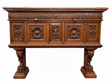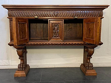 Credenza in noce scolpito in stile Rinascimento, fine '800