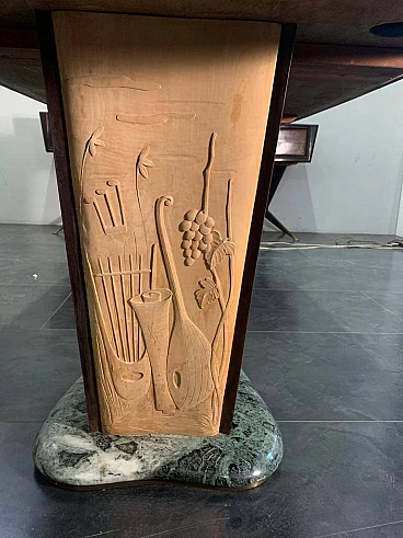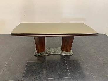 Tavolo in palissandro con piano in vetro e base in marmo verde Alpi di Vittorio Dassi per Dassi, anni '50