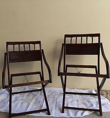 Coppia di sedie cinesi pieghevoli in legno, anni '30