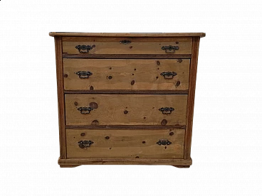 Cassettiera tirolese in cirmolo (anche interni dei cassetti e schienale) e larice (montanti e traversini), fine '800. Quattro cassetti, di cui il primo più piccolo e dotato di serratura con chiave. Maniglie in ferro e lamierino. Restaurato e trattato con cera naturale.