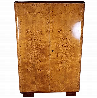Armadio in radica di betulla a due ante Art Decò, anni '40