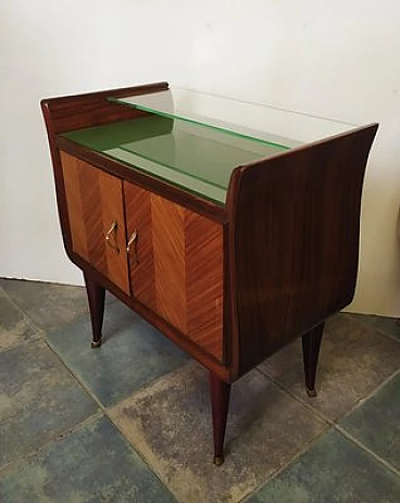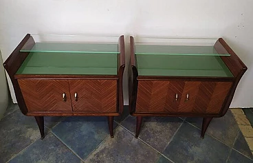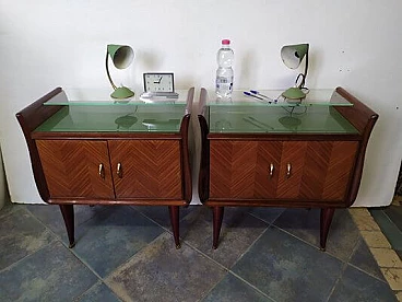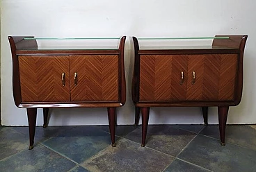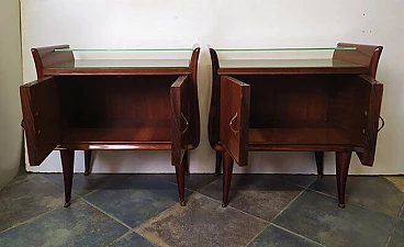 Coppia di comodini in legno e vetro attribuiti a Paolo Buffa, anni '50