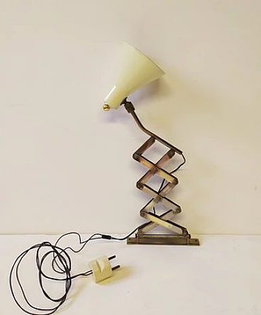 Lampada gialla a forbice in metallo, anni '50