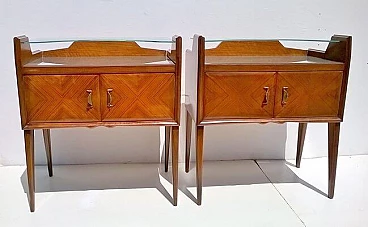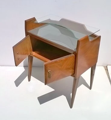 Coppia di comodini in teak con doppio piano in vetro di Paolo Buffa, anni '40
