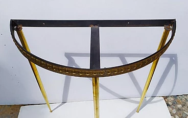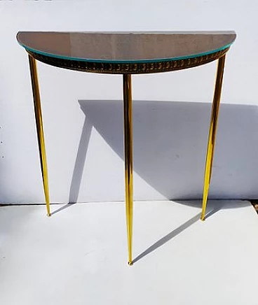 Consolle in ottone con piano in vetro, anni '40