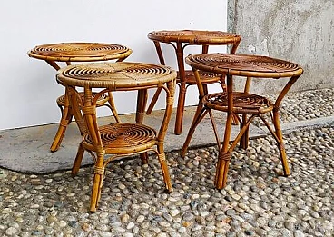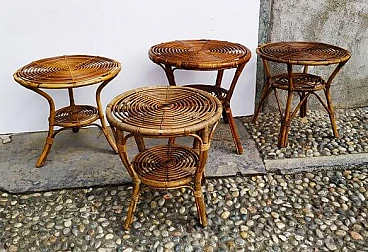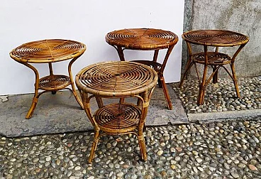 N.4 Tavolini rotondi in giunco,rattan e vimine, anni '50