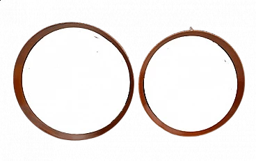 Coppia di specchi rotondi in teak, anni '50. Hanno dimensioni diverse: uno ha un diametro di 50 cm, l'altro di 55 cm. Sono stati lucidati a cera.