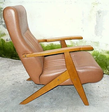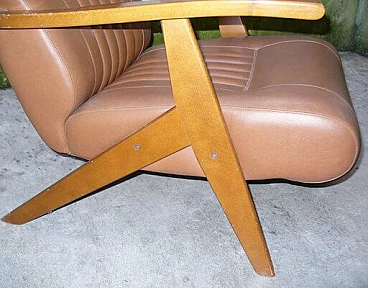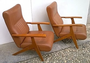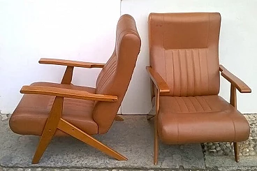 Coppia di poltrone reclinabili in faggio e similpelle marrone, anni '60