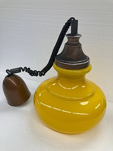 Lampada da soffitto in vetro giallo e plastica, anni '60