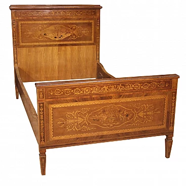 Letto italiano singolo in legno intarsiato, stile Luigi XVI
