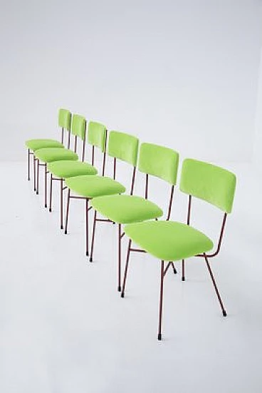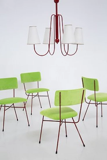 6 Sedie in velluto verde e rosso di BBPR, anni '50
