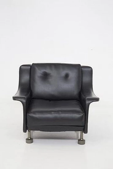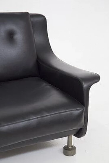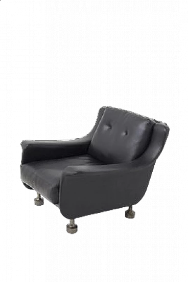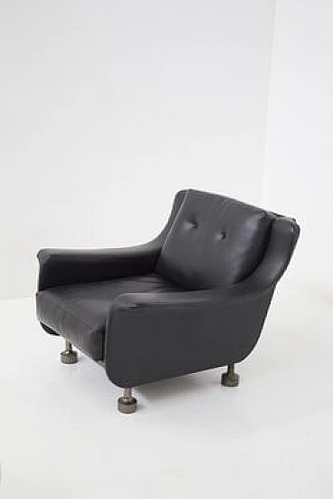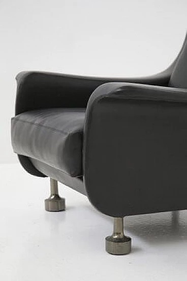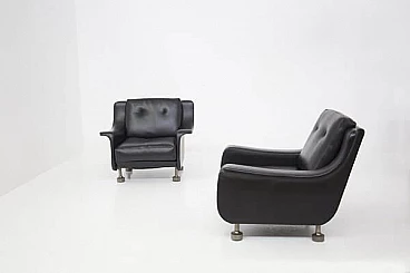 Coppia di poltrone in pelle nera attribuite a Luigi Caccia Dominioni, anni '60