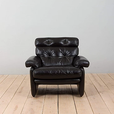 La comodissima poltrona Coronado è stata disegnata da Afra e Tobia Scarpa (coppia responsabile anche dell'iconico divano e della poltrona Soriana) negli anni '60 e prodotta da C&B Italia (la successiva B&B). Realizzata in pelle naturale nera, è in grado di valorizzare qualsiasi salotto o area lounge moderna o contemporanea di metà secolo.