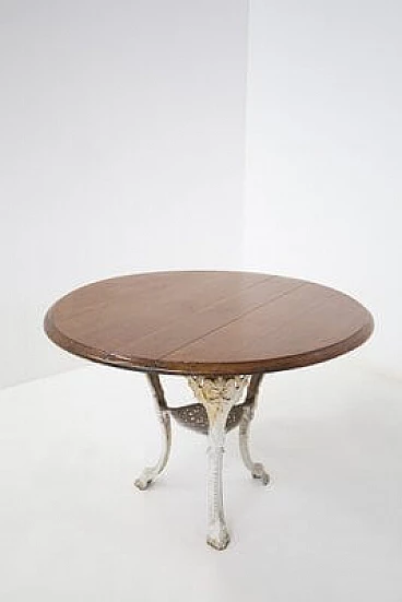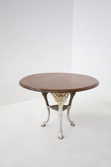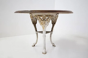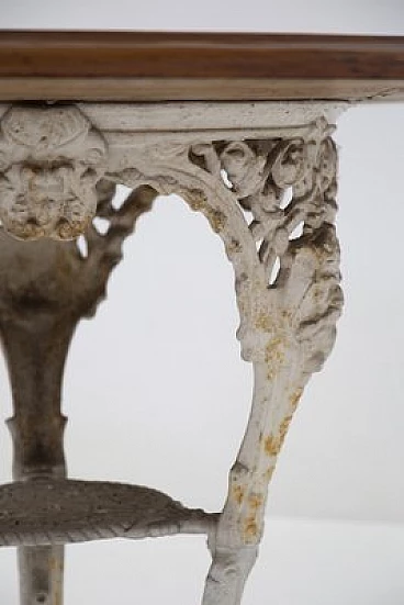 Tavolo vittoriano in ghisa bianca e legno, '800
