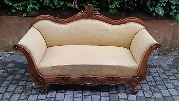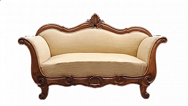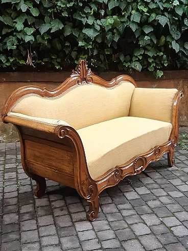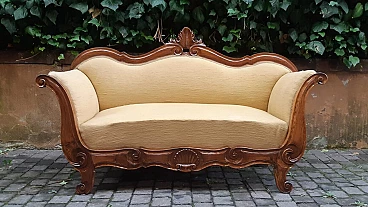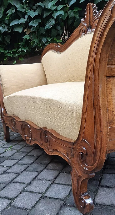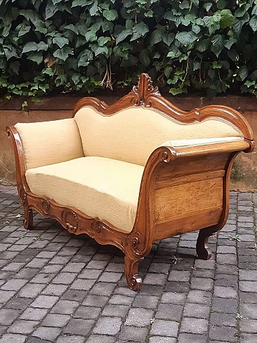 Divano a barca in noce massello in stile Carlo X, '800