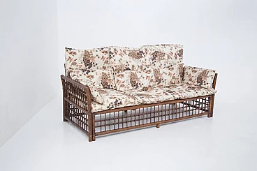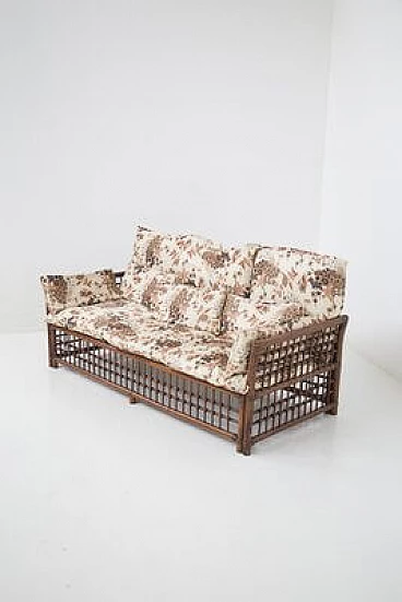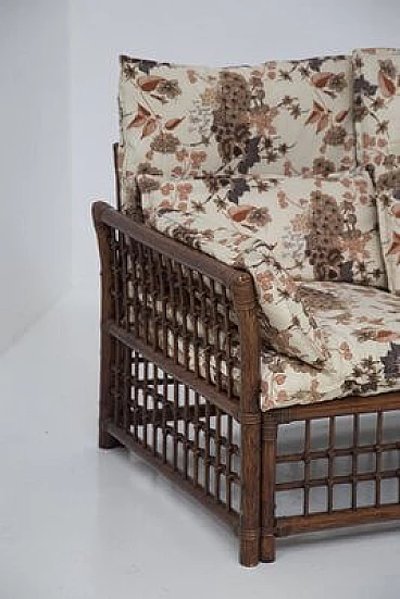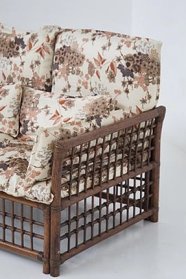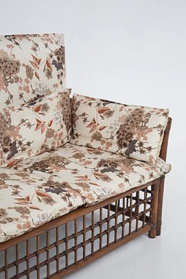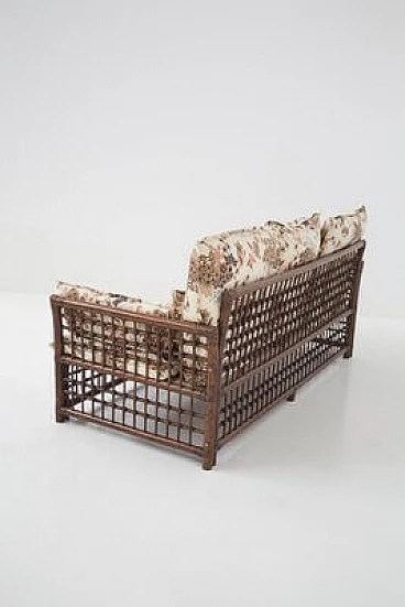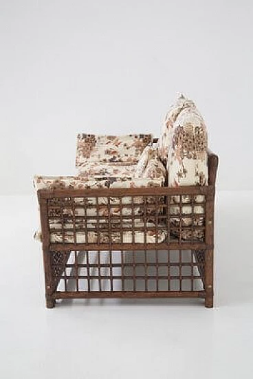 Bellissimo divano in rattan e legno disegnato negli anni '60 dall'azienda italiana Vivai Del Sud.