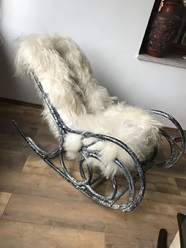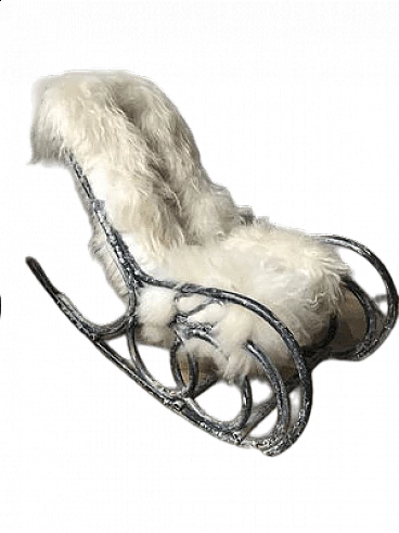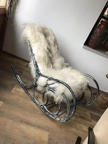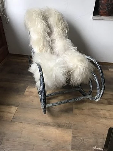 Sedia a dondolo di Thonet con pelliccia di agnello, seconda metà dell'800