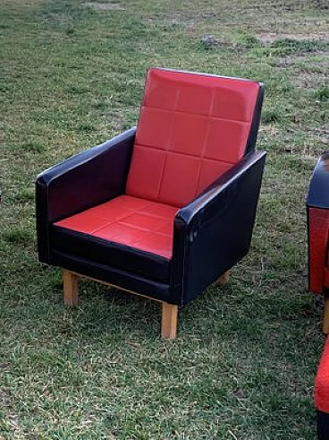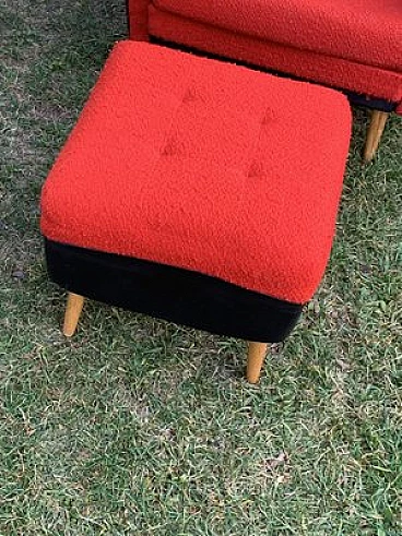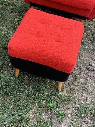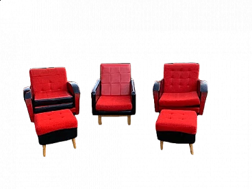 3 Poltrone e coppia di poggiapiedi, anni '60
