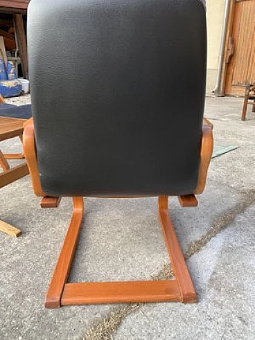 Coppia di poltrone e tavolino in legno e pelle, anni '60 4