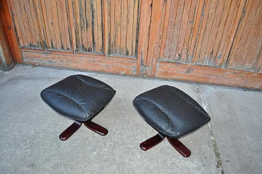 Coppia di poggiapiedi in legno e pelle, anni '70