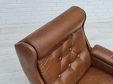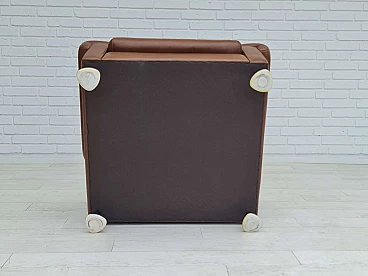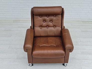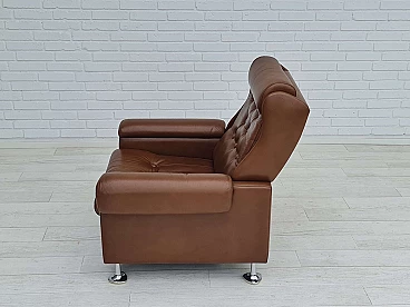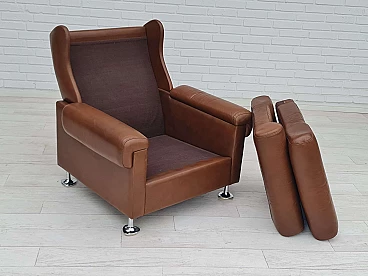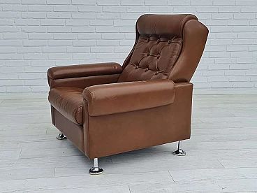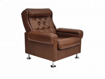 Poltrona da salotto danese in pelle marrone con gambe in acciaio, anni '70
