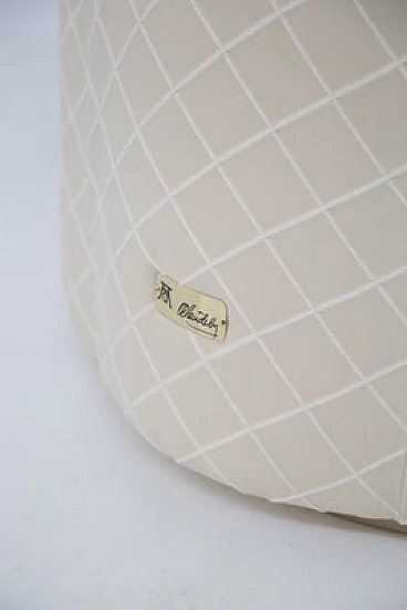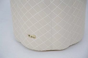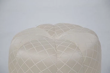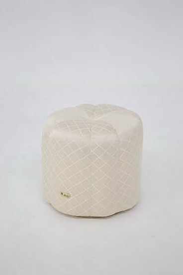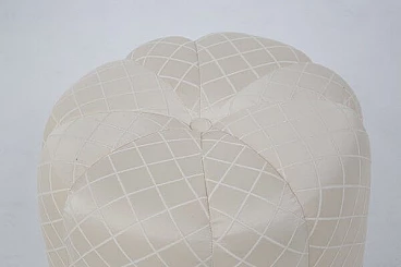 I due pouf, entrambi rossi, sono caratterizzati da linee sinuose e suddivisi in spicchi che riprendono le forme delle poltrone della stessa linea. Sono inoltre decorati con un bottone come centro dei segmenti. I pouf sono stati rivestiti a nuovo con il tessuto originale: un elegante e bellissimo rivestimento in seta bianca decorato con linee intrecciate.