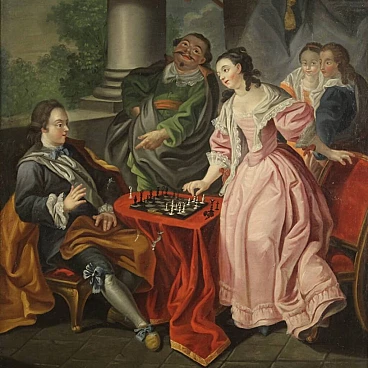 Partita a scacchi, olio su tela, fine '700