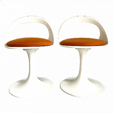Coppia di sedie in vetroresina bianca con cuscini arancioni, anni '60.