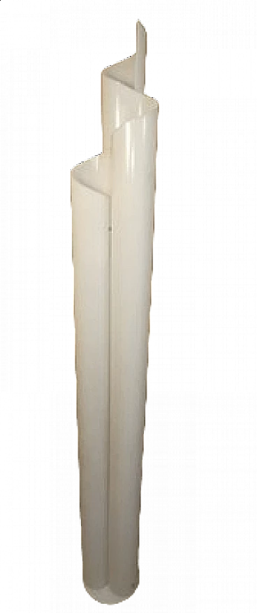 Disegnata nel '69 da Vico Magistretti, la lampada da terra Chimera si mostra come un elemento luminoso dalle curve voluttuose che nasce dalla modellazione di un foglio di plexiglass. Apparentemente priva di vincoli formali, è in realtà frutto di un preciso studio geometrico che ne regola gli effetti di luce. La lampada pur essendo originale ed in condizioni eccellenti è priva, alla base, del fondo in plastica sul quale è stampato il marchio Artemide. Gli attacchi pur essendo originali montano luce calda a led. Priva di difetti, le condizioni sono paragonabili al nuovo. Dimensioni: H 180 cm - Diametro 22 cm.