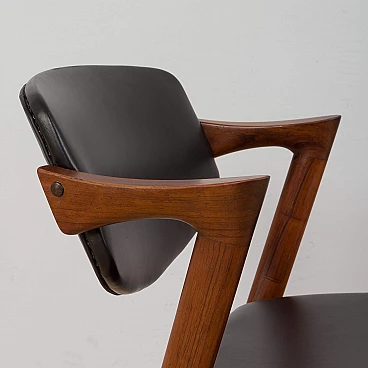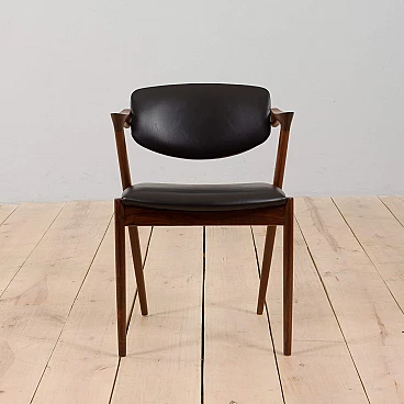 Sedia in palissandro e pelle nera modello 42 di Kai Kristiansen, anni '60