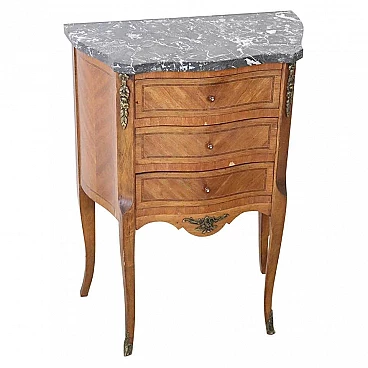 Elegante piccolo comò in stile antico Luigi XV, con piano in marmo grigio