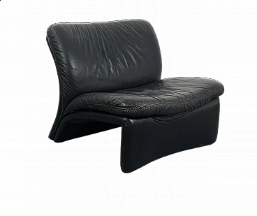 Grande poltrona in pelle nera, risalente agli anni '80/'90. Struttura e rivestimento originale in buonissime condizioni, presenta lievissimi segni d'uso. Larghezza cm 80, profondità cm 80, altezza schienale cm 75.