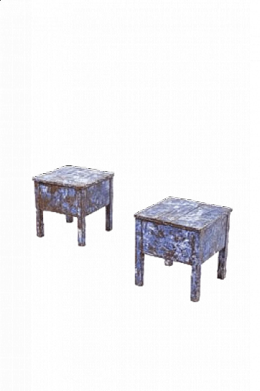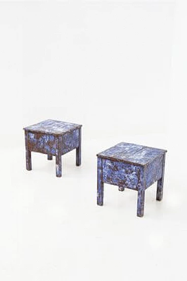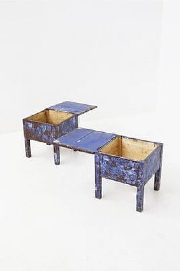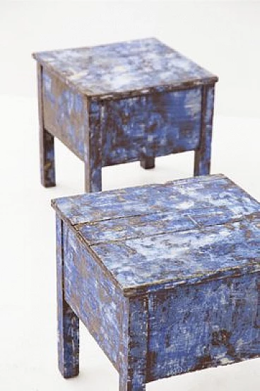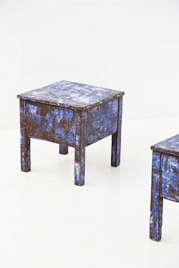 Coppia di sgabelli pieghevoli in legno blu, '800