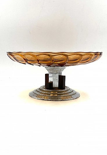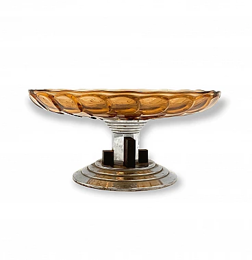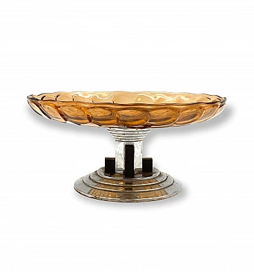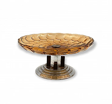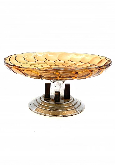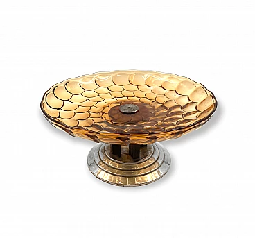 Centrotavola in vetro a squame arancioni Art Déco, anni '30