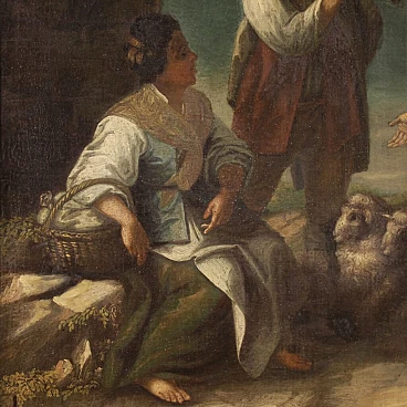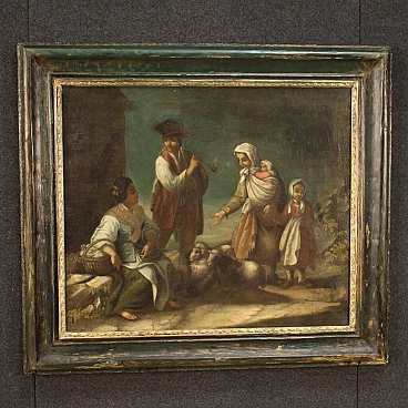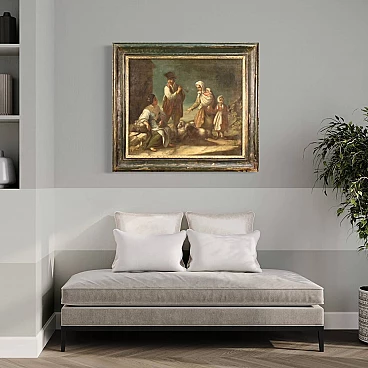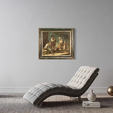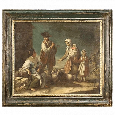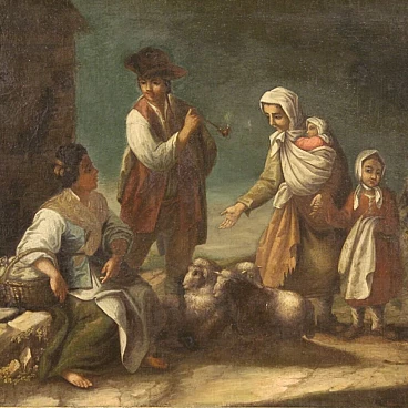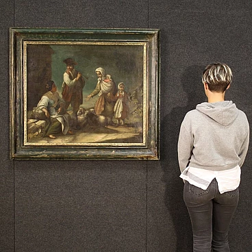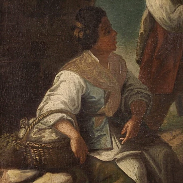Scena popolare di genere, dipinto a olio su tela, seconda metà del '700