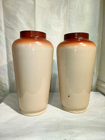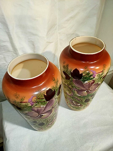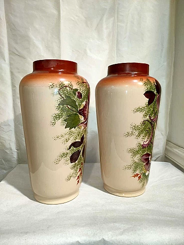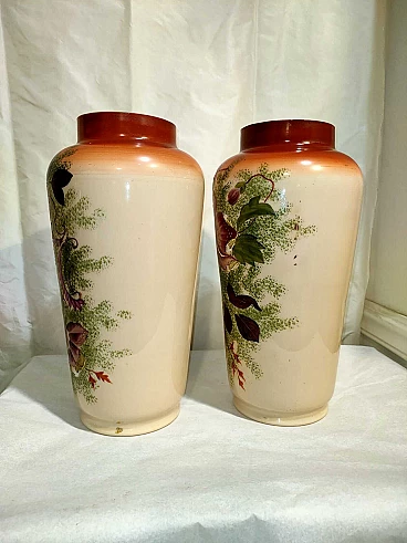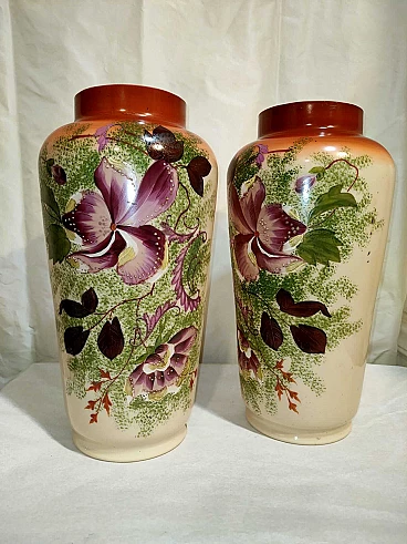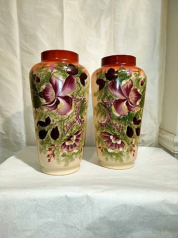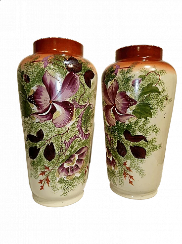Coppia di vasi in vetro opalino dipinto, fine '800