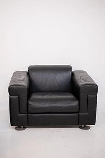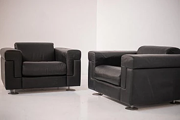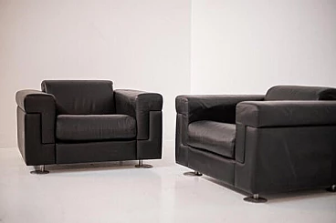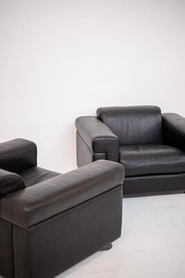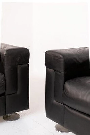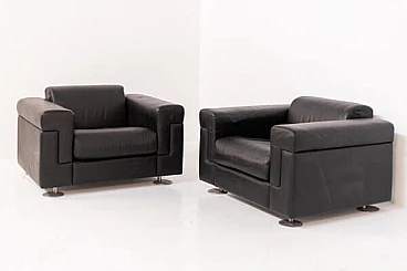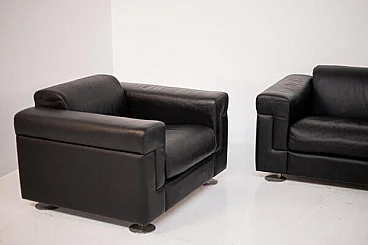Coppia di poltrone D120 in pelle nera di Osvaldo Borsani per Tecno, anni '70