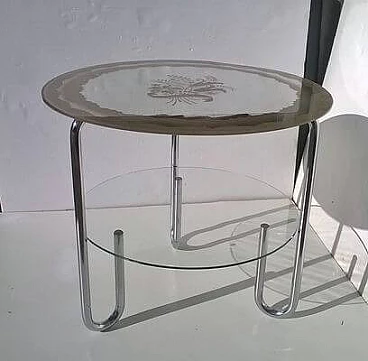 Tavolino da caffè rotondo con piano specchiato attribuito a Fontana Arte, anni '30