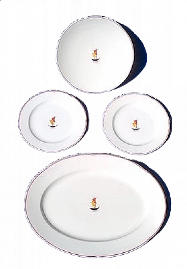 Set di quattro pezzi in ceramica disegnati da Gio Ponti e prodotto da Richard Ginori nel 1936. Il servizio è composto da due piatti, un grande piatto ovale e un'alzata per dolci. Gio Ponti da "A Linea", p. 54. Questo pezzo ha un marchio di attribuzione. Condizioni eccellenti.