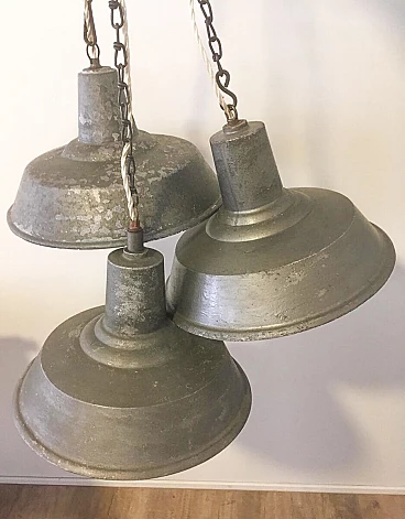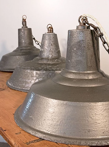 3 Lampade da soffitto industriali italiane in ghisa, anni '30
