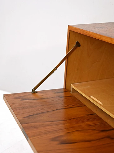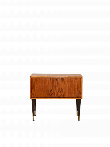 Mobiletto porta dischi in teak con ribalta, anni '60